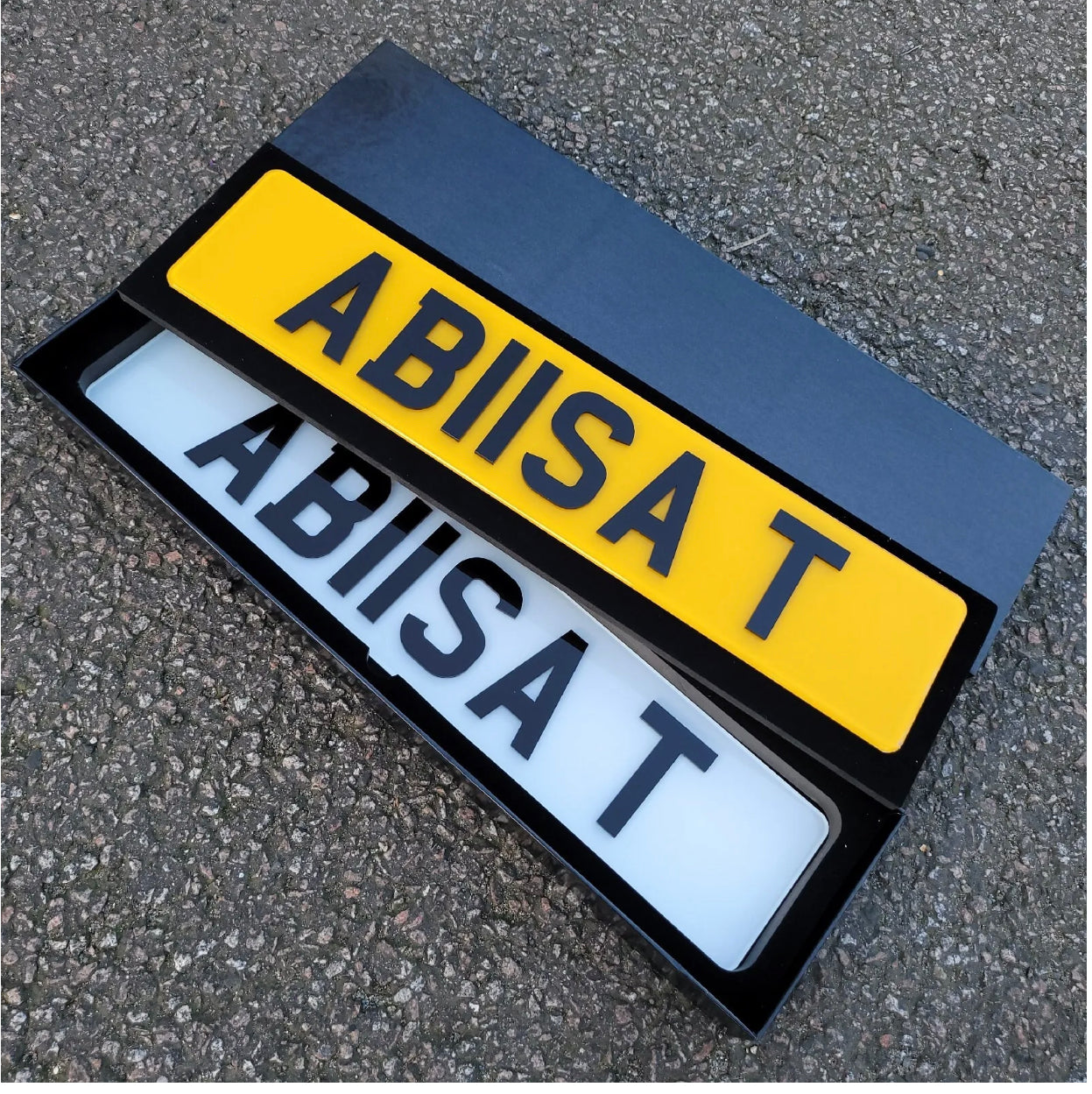 Our luxury gift boxes hold two number plates in an oblong style! That can be standard, Gel, 3D, 4D or short they will fit just right in the interior foam insert.